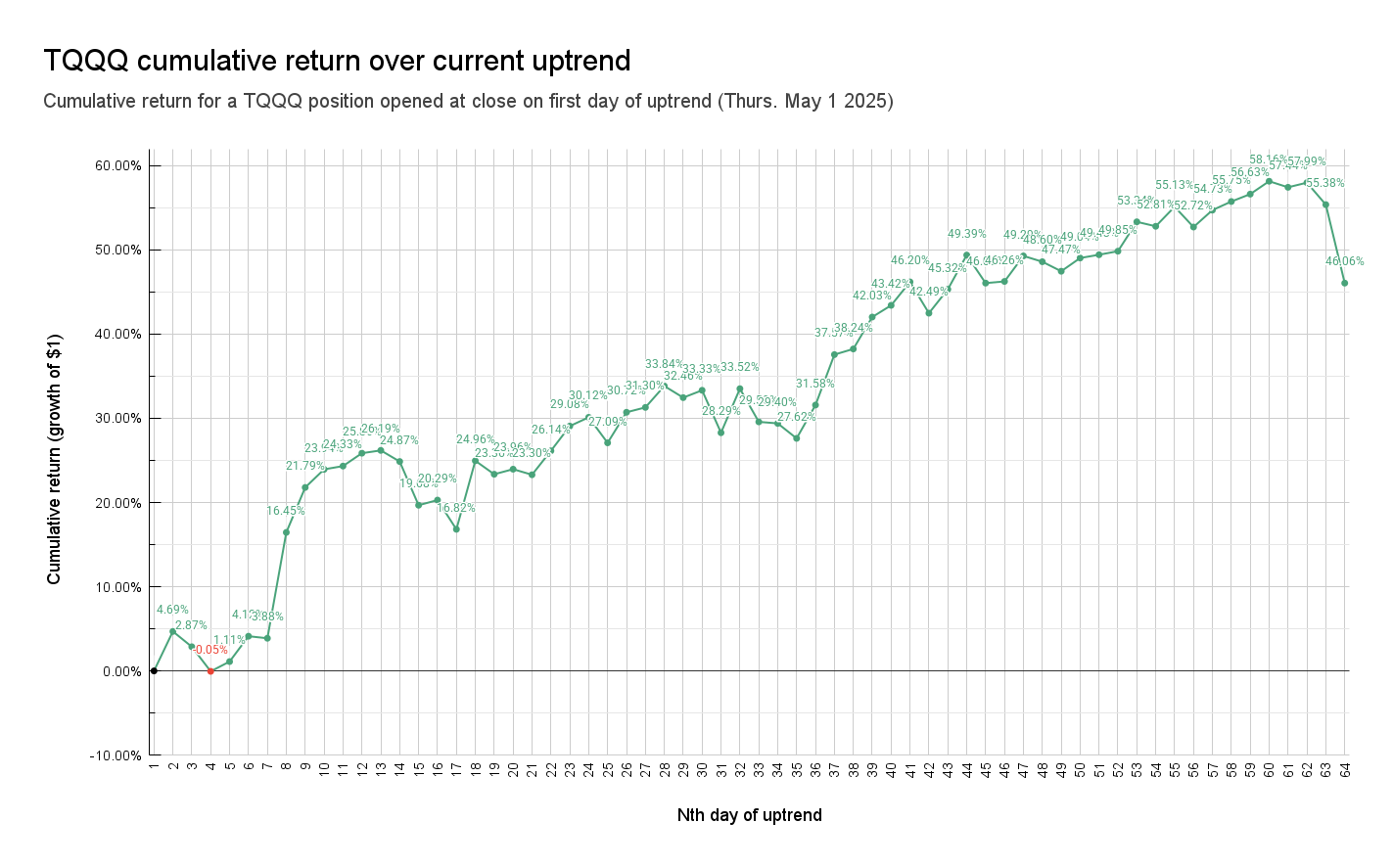 QQQ+14.99% since start of current uptrendTQQQ+46.06% since start of current uptrend